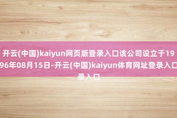 开云(中国)kaiyun网页版登录入口该公司设立于1996年08月15日-开云(中国)kaiyun体育网址登录入口