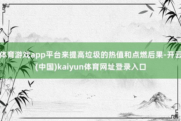 体育游戏app平台来提高垃圾的热值和点燃后果-开云(中国)kaiyun体育网址登录入口